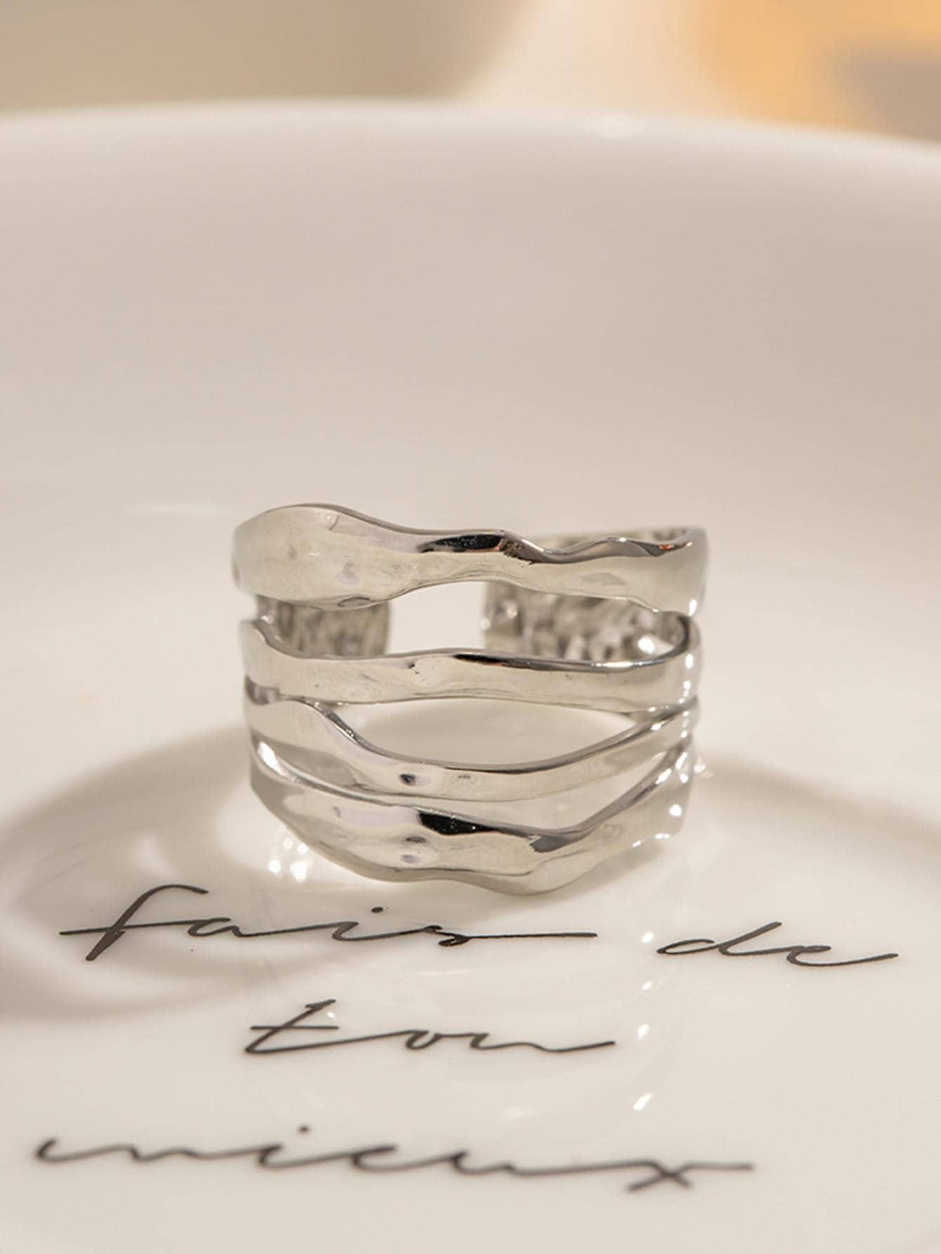 - خامة الفولاذ المقاوم للصدأ تضمن ثبات اللون ولمعانًا يدوم طويلًا، مما يحافظ على فخامة الخاتم مع الاستخدام المتكرر.